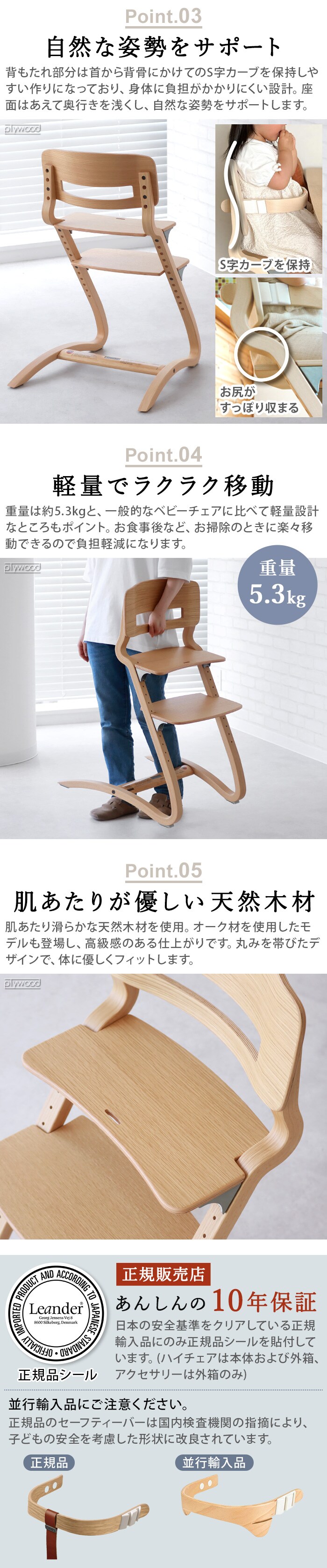 日本正規品10年保証 リエンダー ハイチェア ルーイー Leander Louie ≪単品 オーク LEA040068≫ ベビーチェア キッズ 子供用 椅子 木製 高さ調整12 赤ちゃん 転倒 防止 大人まで使える 北欧家具 おしゃれ ダイニング