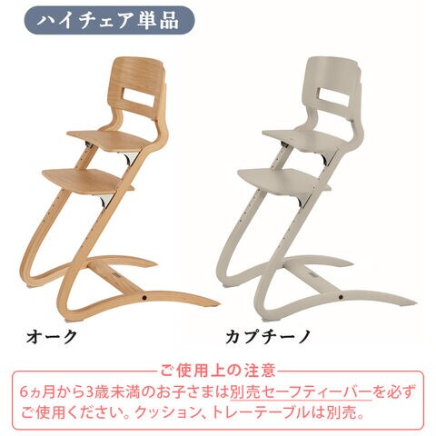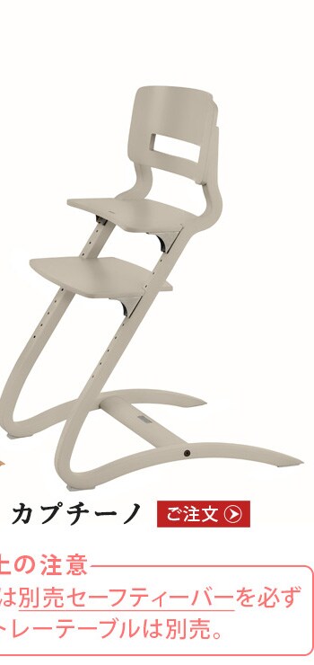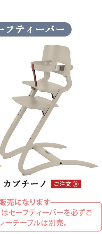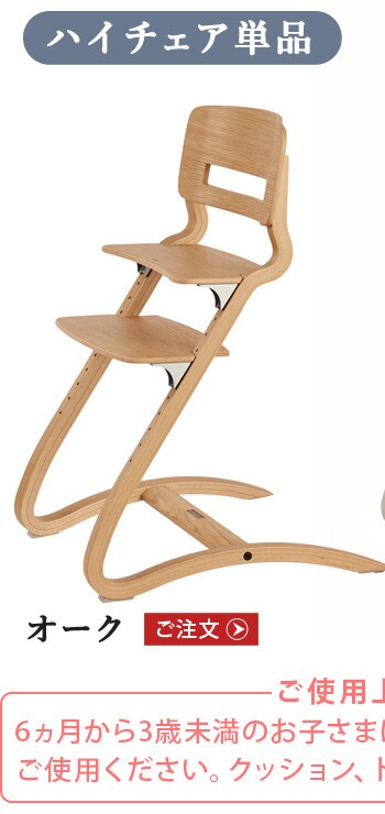 | 生後6ヵ月-成人 6ヶ月から3歳未満のお子様がハイチェアを使用される場合は、セーフティーバー(別売り)を必ず使用してください。 |