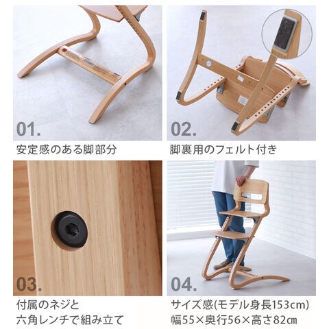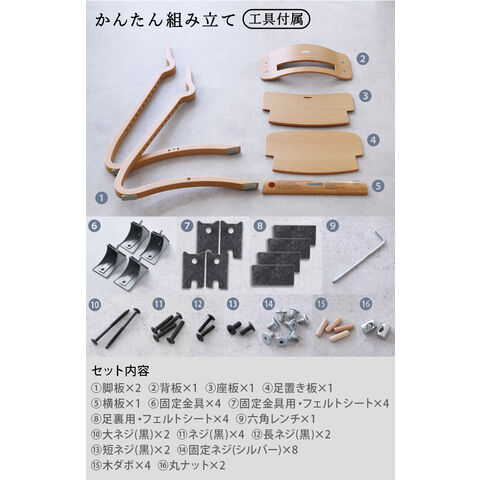 | 天然素材使用しているため、木目、色合いには個体差があります。 ネジや留め具が緩んでいないか定期的に点検を行ってください。 ご使用の年齢の目安、適応体重を必ず守ってご使用ください。 |