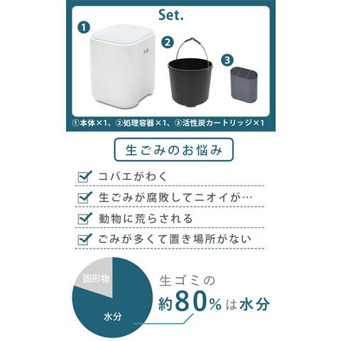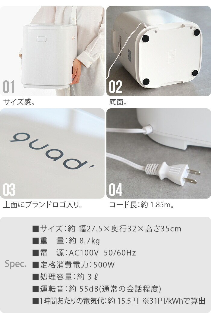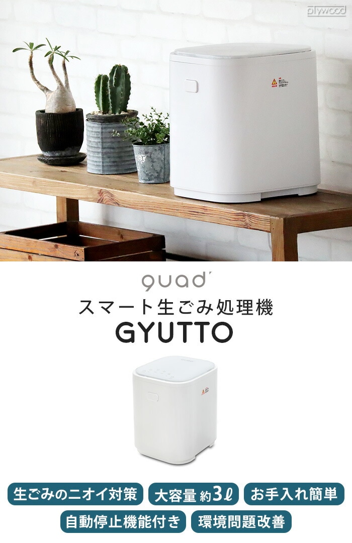 クアッズ スマート生ごみ処理機 QUADS GYUTTO ≪QS361WH≫ 助成金対象 生ごみ処理機 乾燥 家庭用 生ごみ減量乾燥機 高温乾燥 消臭 自動停止 ワンタッチ 粉砕一体化 助成金