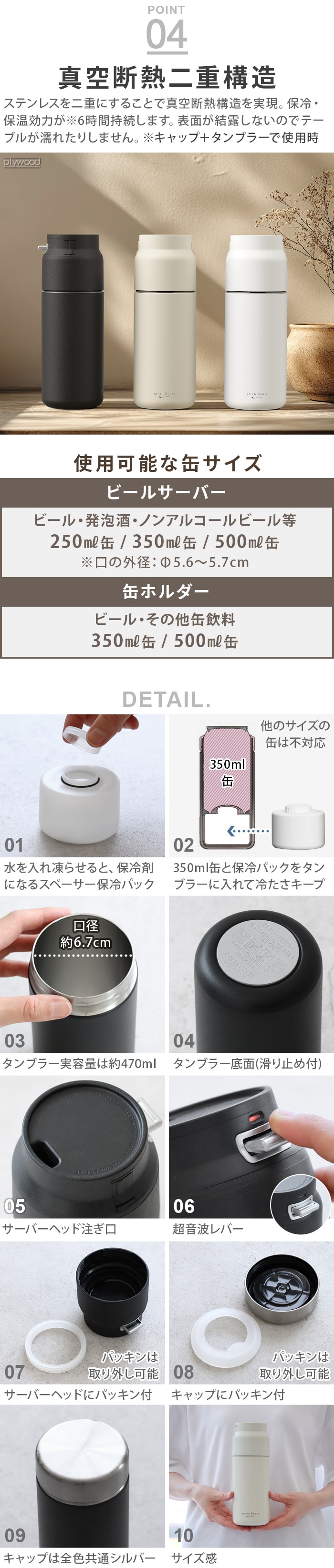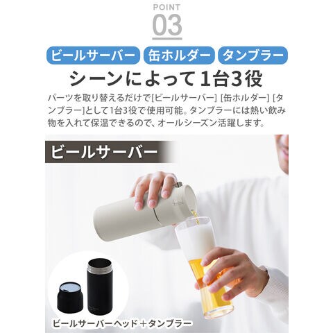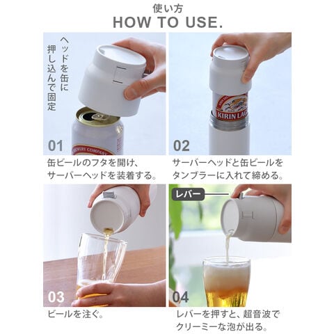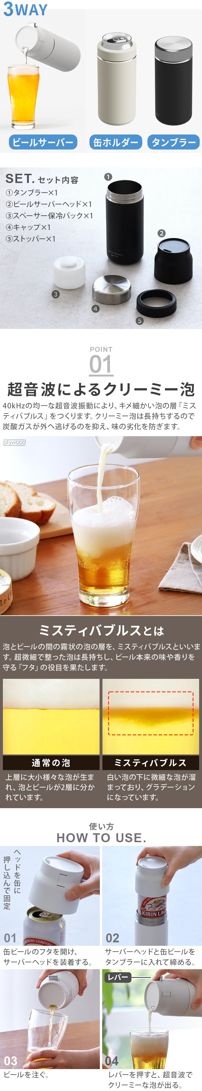 | 3WAY:缶ビールサーバー・缶ホルダー・タンブラー 超音波振動によるクリーミー泡 |