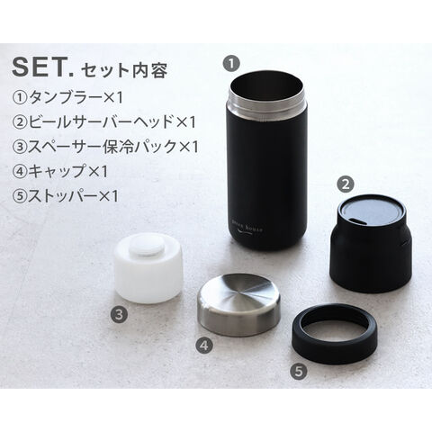 | タンブラー×1、ビールサーバーヘッド×1、スペーサー保冷パック×1、キャップ×1、ストッパー×1 |