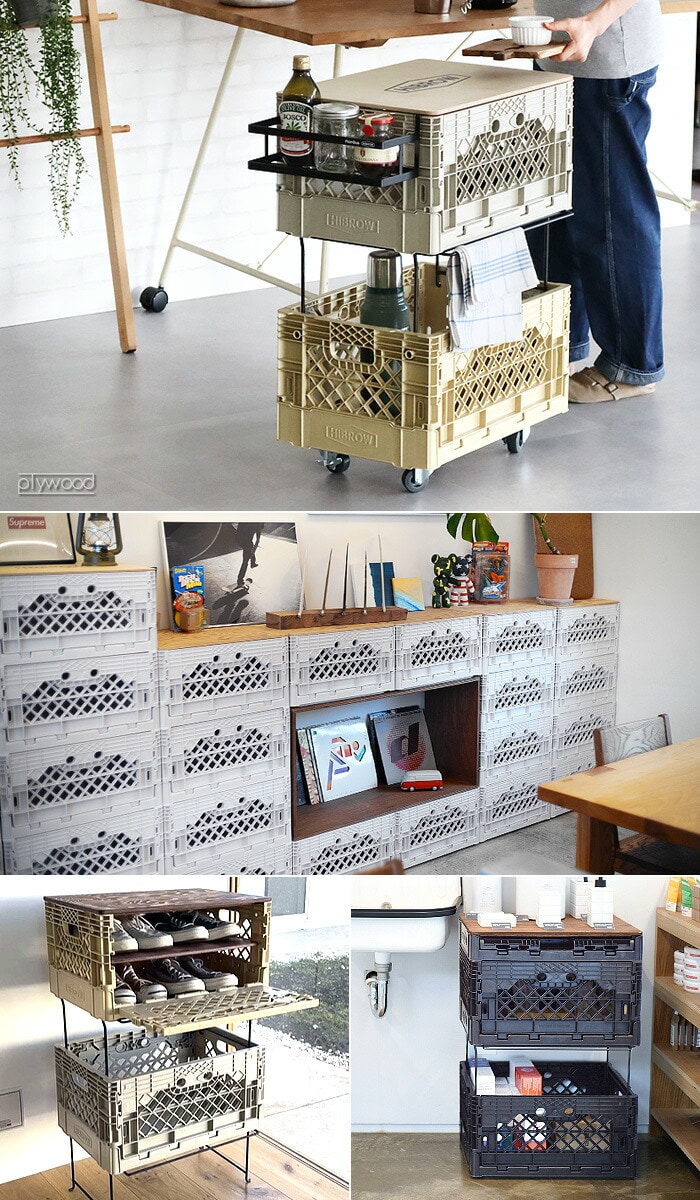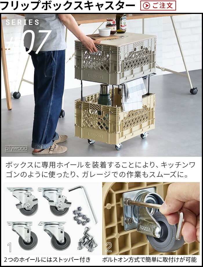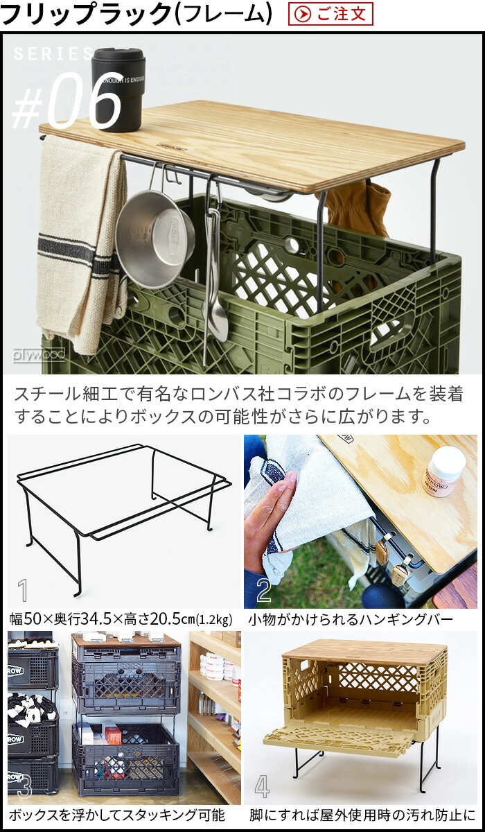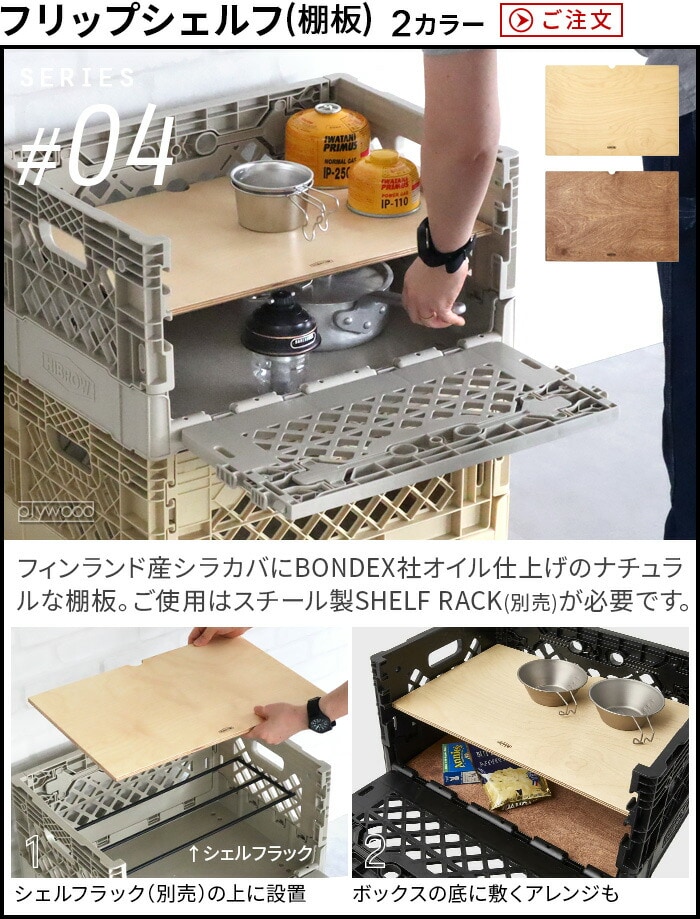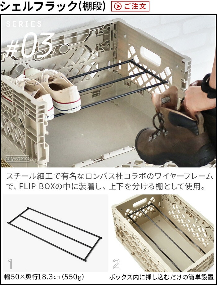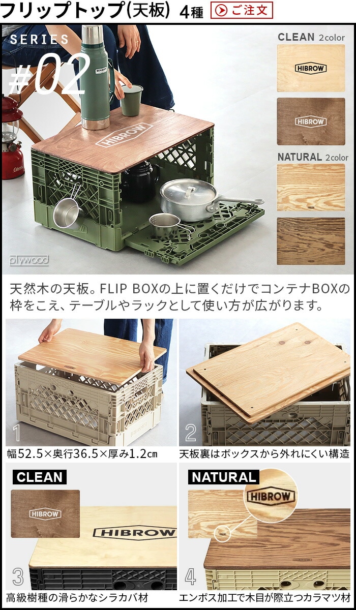 HIBROW FLIP BOX ハイブロウ フリップボックス ≪ソルティーサンド≫ 折りたたみコンテナ 積み重ね 大容量 コンテナボックス 横から オリコン おしゃれ 横 側面 開き インテリア 収納 家具 シェルフ 棚 オフィス収納 キャンプ アウトドア