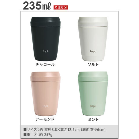 topl To Go Tumbler トップル トゥゴー タンブラー 235ml ≪ソルト≫ 真空二重構造 マグ 直飲み ステンレス 保温 保冷 水筒 蓋付き マイボトル 車 コーヒー 食洗機対応 運転 通勤 通学 持ち運び おしゃれ ギフト