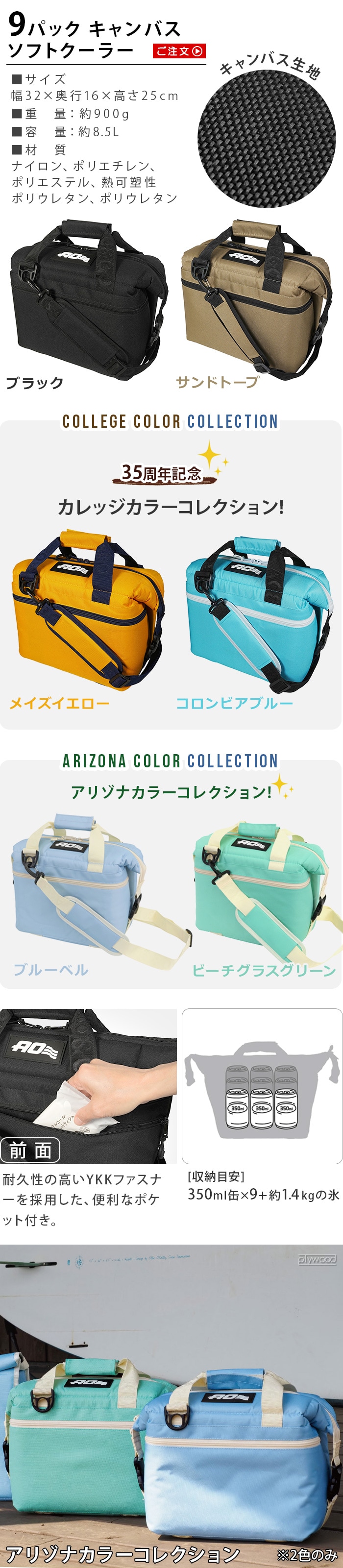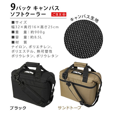 AO Coolers エーオークーラーズ キャンバス ソフトクーラー 9パック ≪サンドトープ AO9TA≫ 保冷バッグ 小型 折りたたみ おしゃれ 防水 キャンプ ピクニック トートバッグ ショルダーバッグ 2way