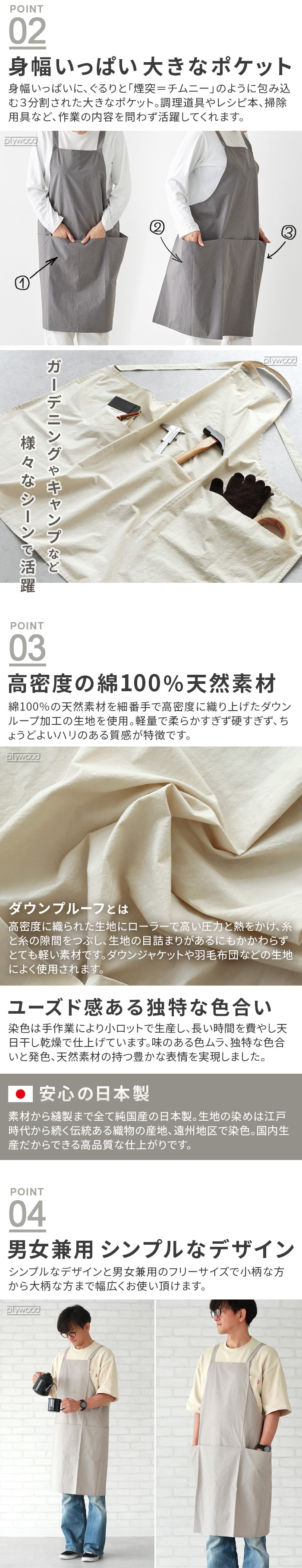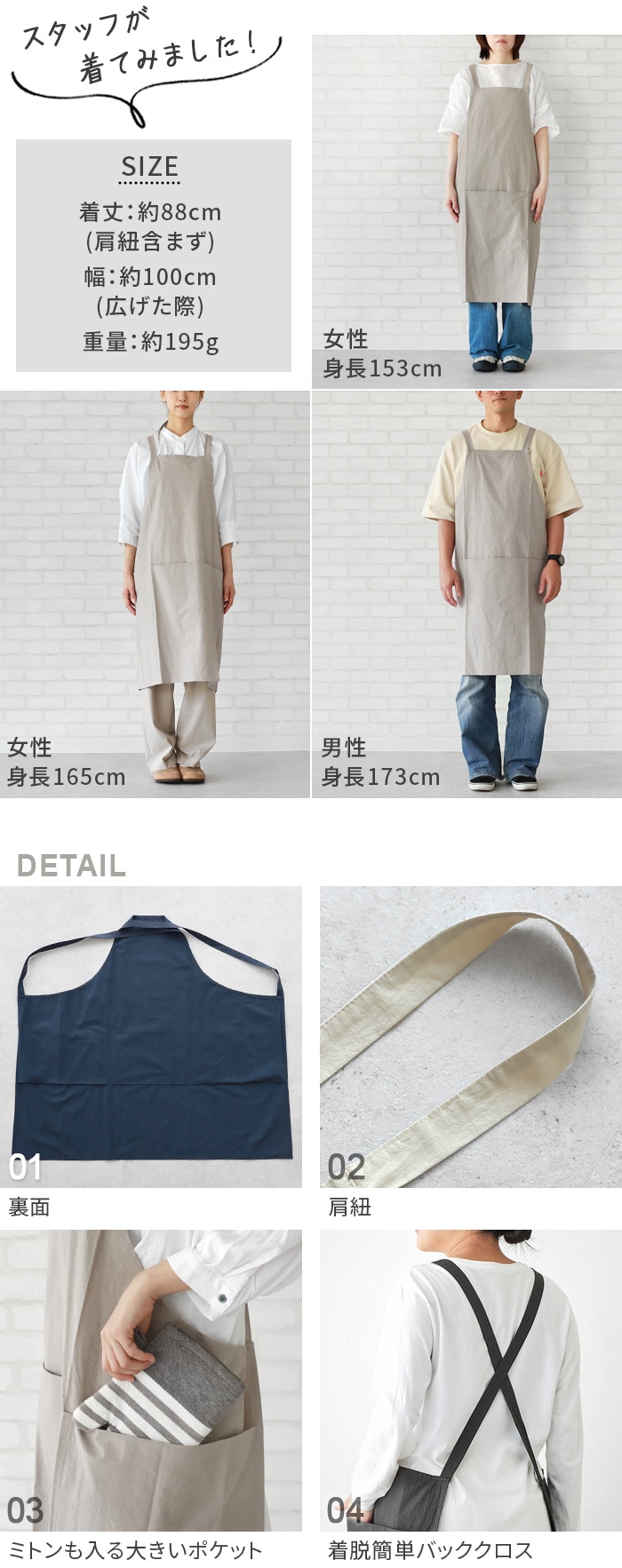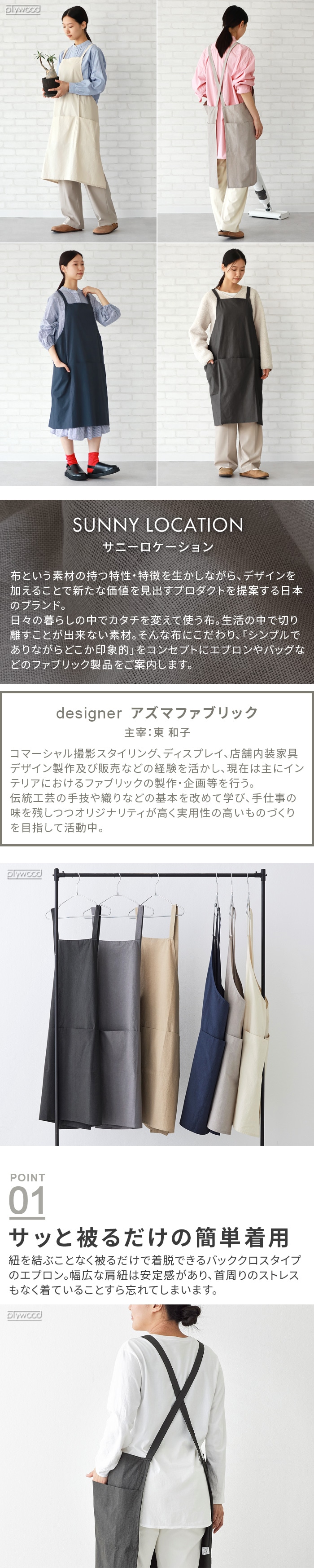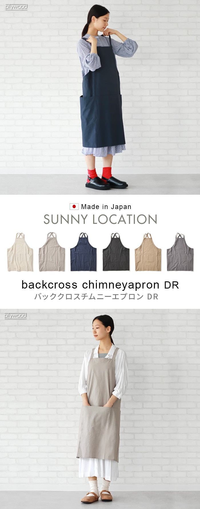 SUNNY LOCATION サニーロケーション バッククロスチムニーエプロン DR ≪エクリュ DRBX01≫ かぶるだけ おしゃれ 男女兼用 大きいサイズ 日本製 紐なし ユニフォーム レストラン 綿100% ポケット アウトドア ガーデニング ギフト 母の日