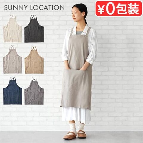 SUNNY LOCATION サニーロケーション バッククロスチムニーエプロン DR ≪グレージュ DRBX02≫ かぶるだけ おしゃれ 男女兼用 大きいサイズ 日本製 紐なし ユニフォーム レストラン 綿100% ポケット アウトドア ガーデニング ギフト 母の日