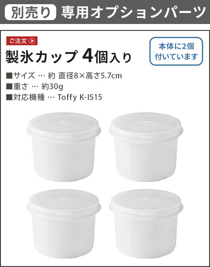 Toffy トフィー コードレスふわふわかき氷器用 製氷カップ4個入り ≪K-IS-SCUP-4SET≫ K-IS15専用 本体別売り 電動 充電式 ハンディタイプ ふわふわ かき氷機 スティック型 おしゃれ かき氷 家庭用 台湾風 シャリシャリ スイーツ 映える