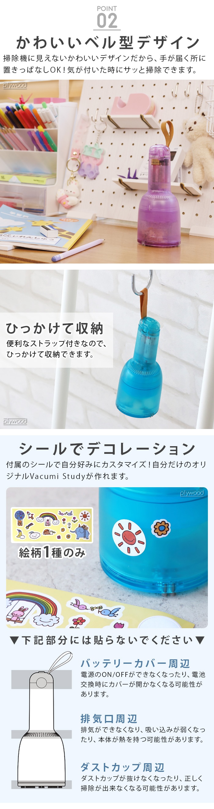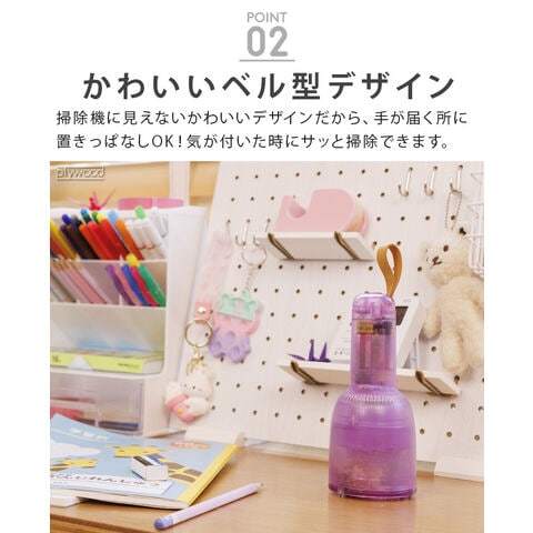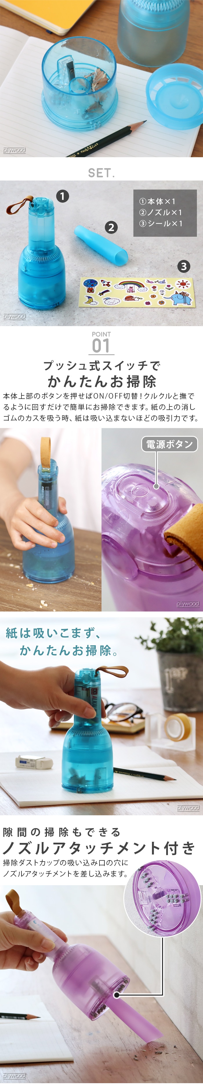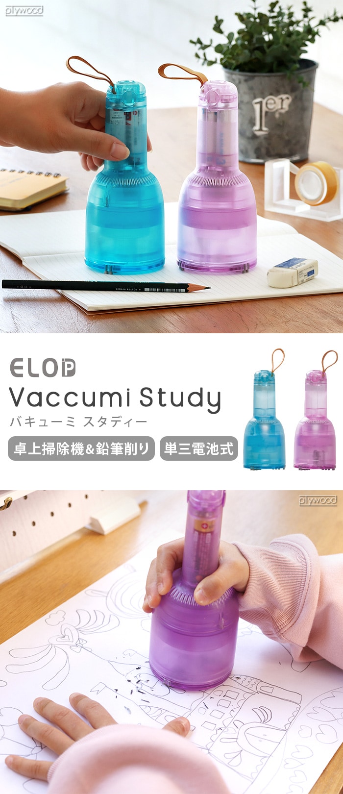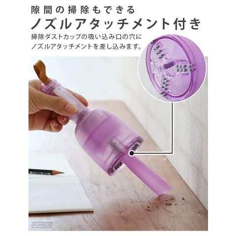 バキューミ スタディ 卓上掃除機+鉛筆削り Vaccumi Study ≪パープル SP-V.R02≫ デスククリーナー 子供 ハンディ ノズル付き 乾電池式 机上クリーナー 消しゴムかす 食べこぼし 勉強机 コードレス 吊るせる 簡単操作 リビング学習 掃除用品