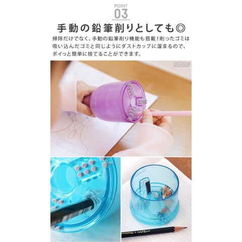 | 卓上掃除機&鉛筆削り機能付きの2in1 ダストカップ、フィルター、ノズルは水洗いできます。 |