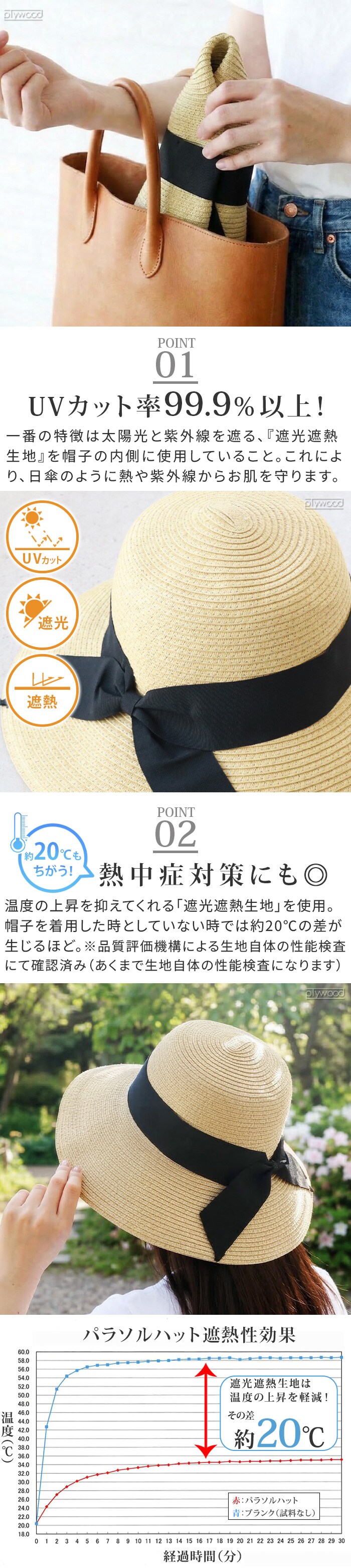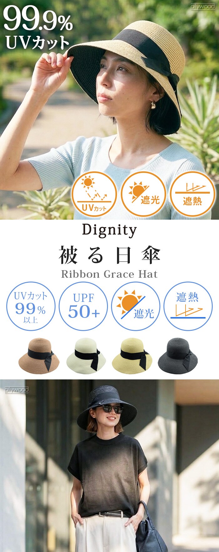 被る日傘 Parsonal Ribbon Grace Hat ≪アイボリー ND-6595≫ 麦わら帽子 uvカット レディース 日焼け防止 蒸れない 熱中症対策 メンズ 遮光 99.9% 男女兼用 リボン おしゃれ 紫外線対策 ナチュラル ギフト プレゼント