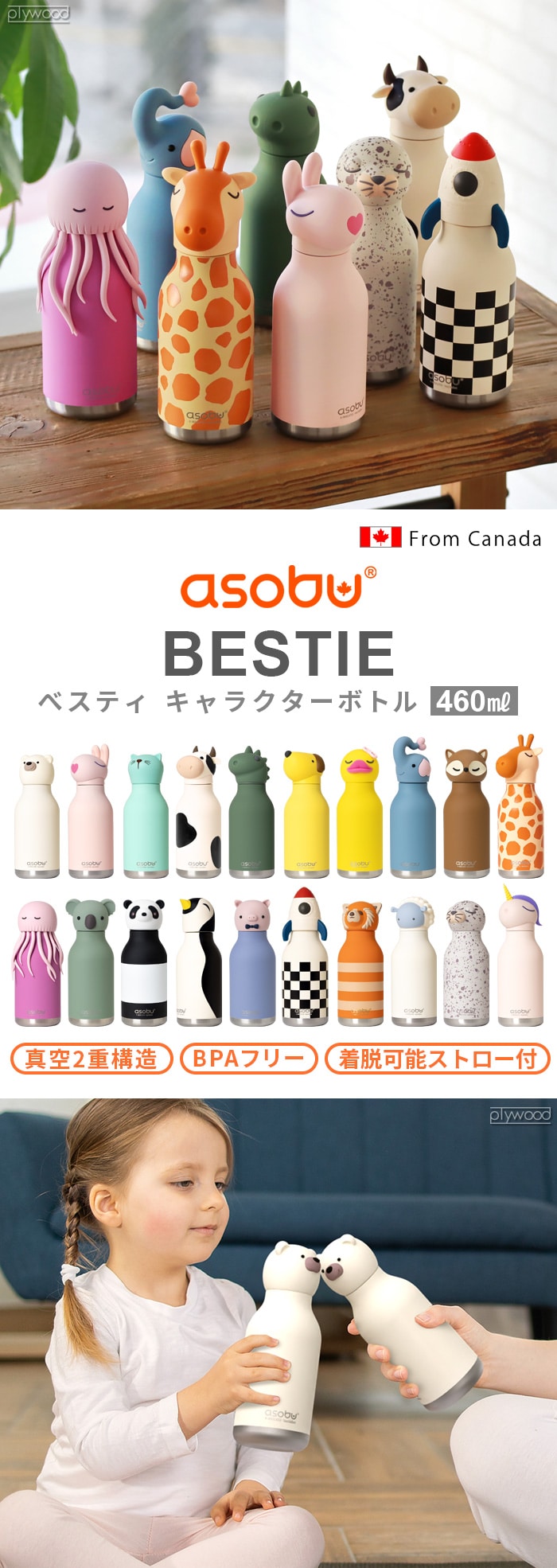 asobu BESTIE アソブ べスティ キャラクターボトル ≪パンダ SBV44BE≫ 水筒 キッズ ストロー付 真空二重構造 直飲み ステンレス 保温 保冷 かわいい 動物 タンブラー水筒 蓋付き 真空断熱 マイボトル 遠足 運動会 通学 アウトドア 持ち運び おしゃれ ギフト