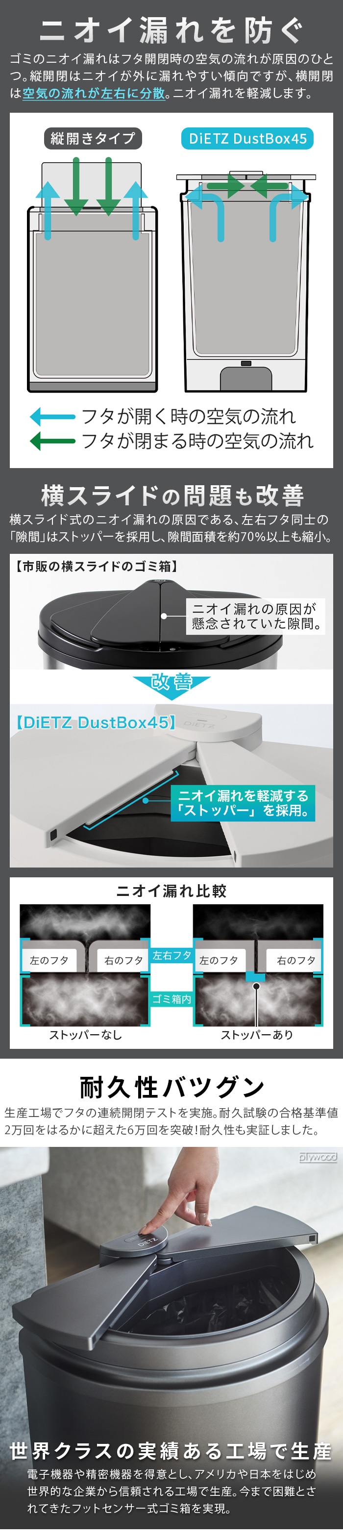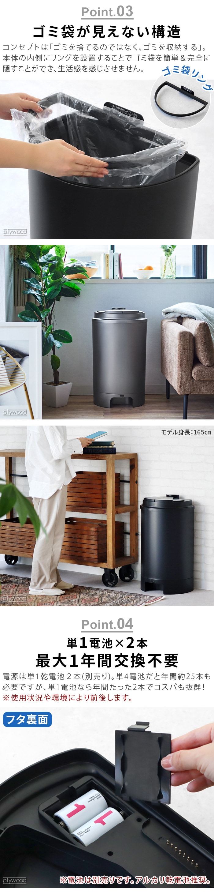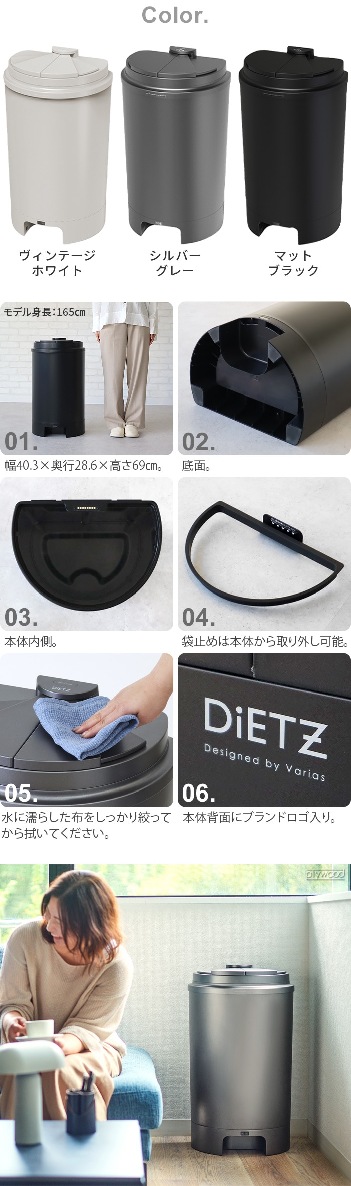 | 本体:ステンレス鋼、ABS樹脂 フタ:ABS樹脂 ゴミ袋リング:PP樹脂 |