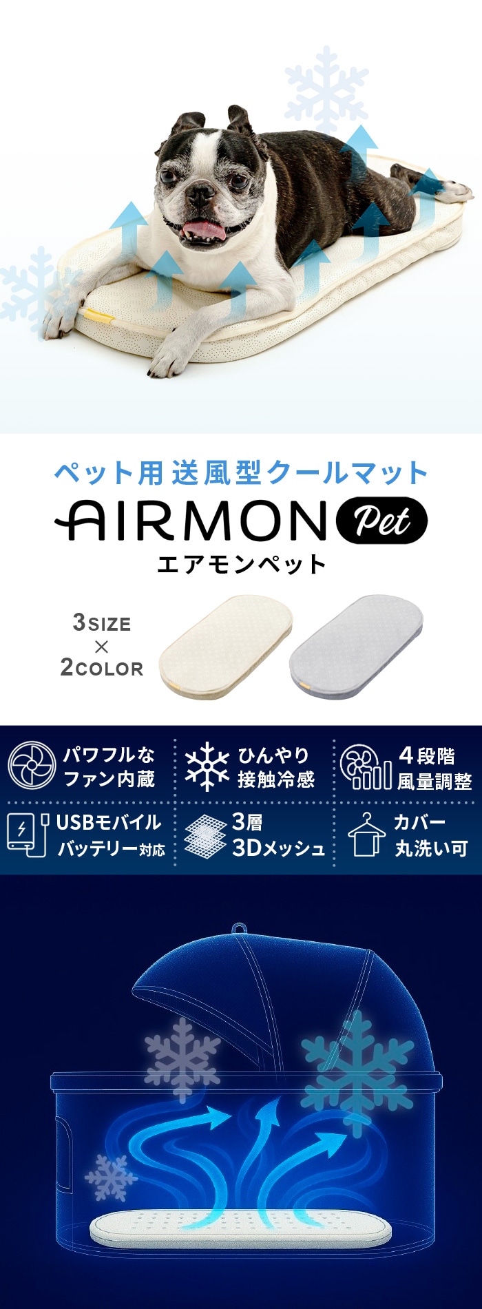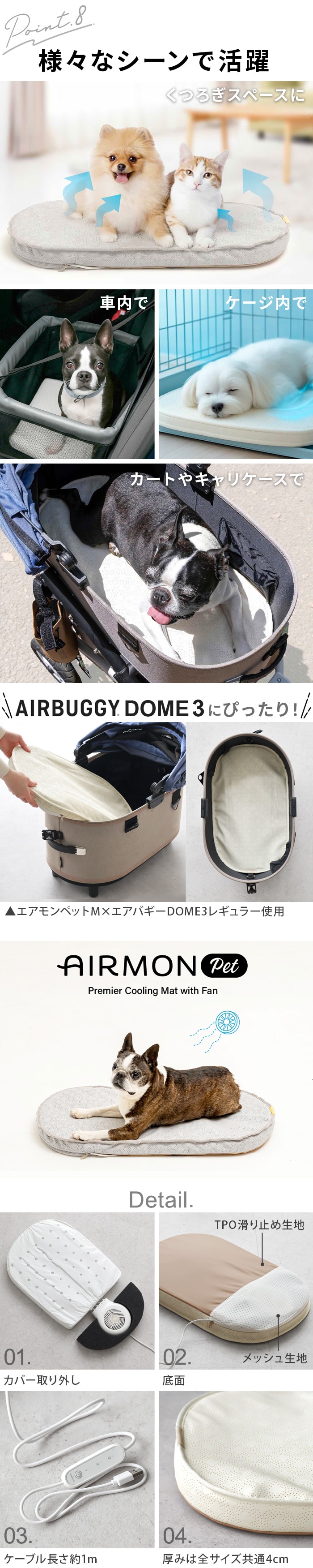 AIRMON Pet エアモンペット [Lサイズ] ≪クリームアイボリー≫ ファン付き クールマット 送風 扇風機 接触冷感 ペット用送風型クールマット 犬 ひんやり コットマット ベッド ペットカート アクセサリー ドーム3 パッド 猫 暑さ対策 夏 熱中症対策 涼しい