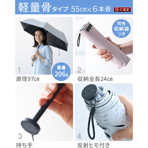 | 親骨:約55cm 直径:約97cm 重さ:約206g 収納長さ:約24cm |