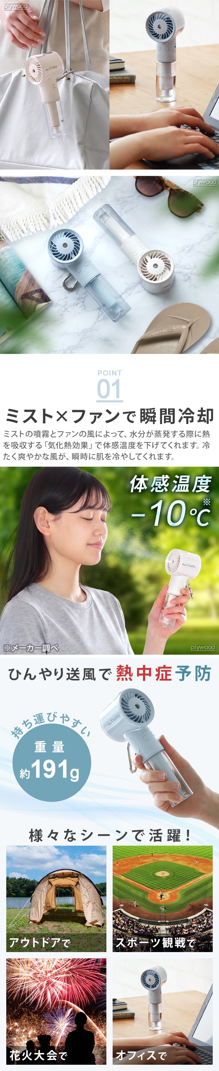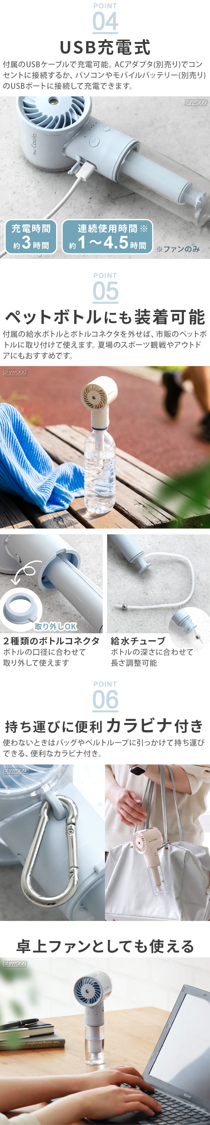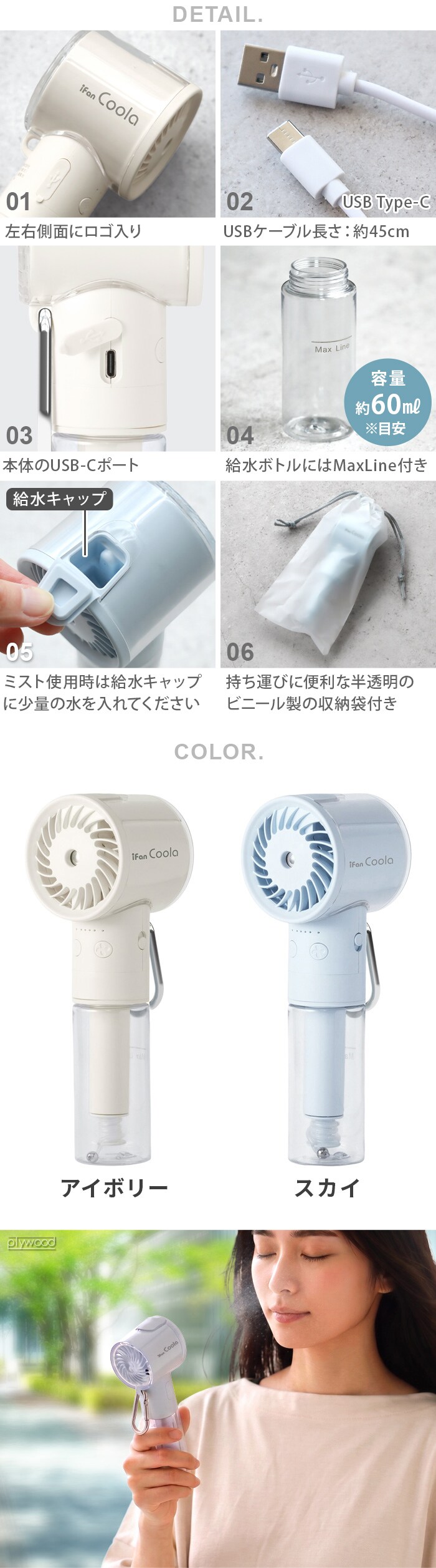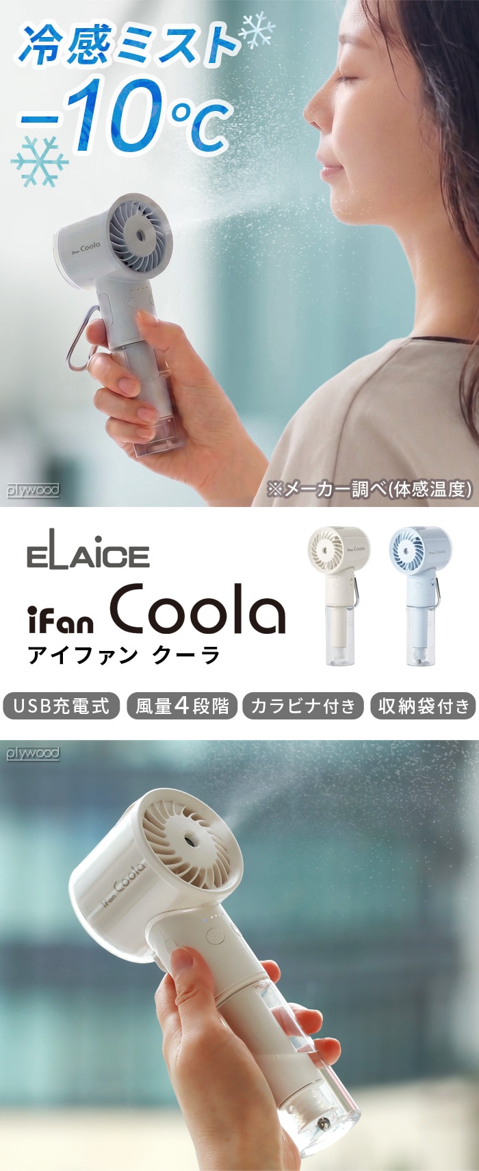ELAiCE iFan Coola エレス アイファンクーラ ≪スカイ IF-CLA26≫ ハンディファン ミスト 冷感 扇風機 手持ち 充電式 保湿 小型 卓上ファン USB 熱中症対策 大風量 おしゃれ USB充電式 カラビナ付き ギフト プレゼント