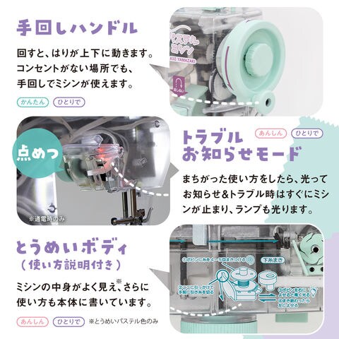 パステルミシン PM-01 アックスヤマザキ ミシン 電子ミシン コンパクトミシン 初心者 コンパクト おすすめ 透明ミシン 家庭科ミシン かわいい パステル 子ども用 毛糸 人気 ギフト プレゼント クリスマス ミシン本体 スケルトン 初めて 小学生 5年生【とうめいパステル - 本体のみ】