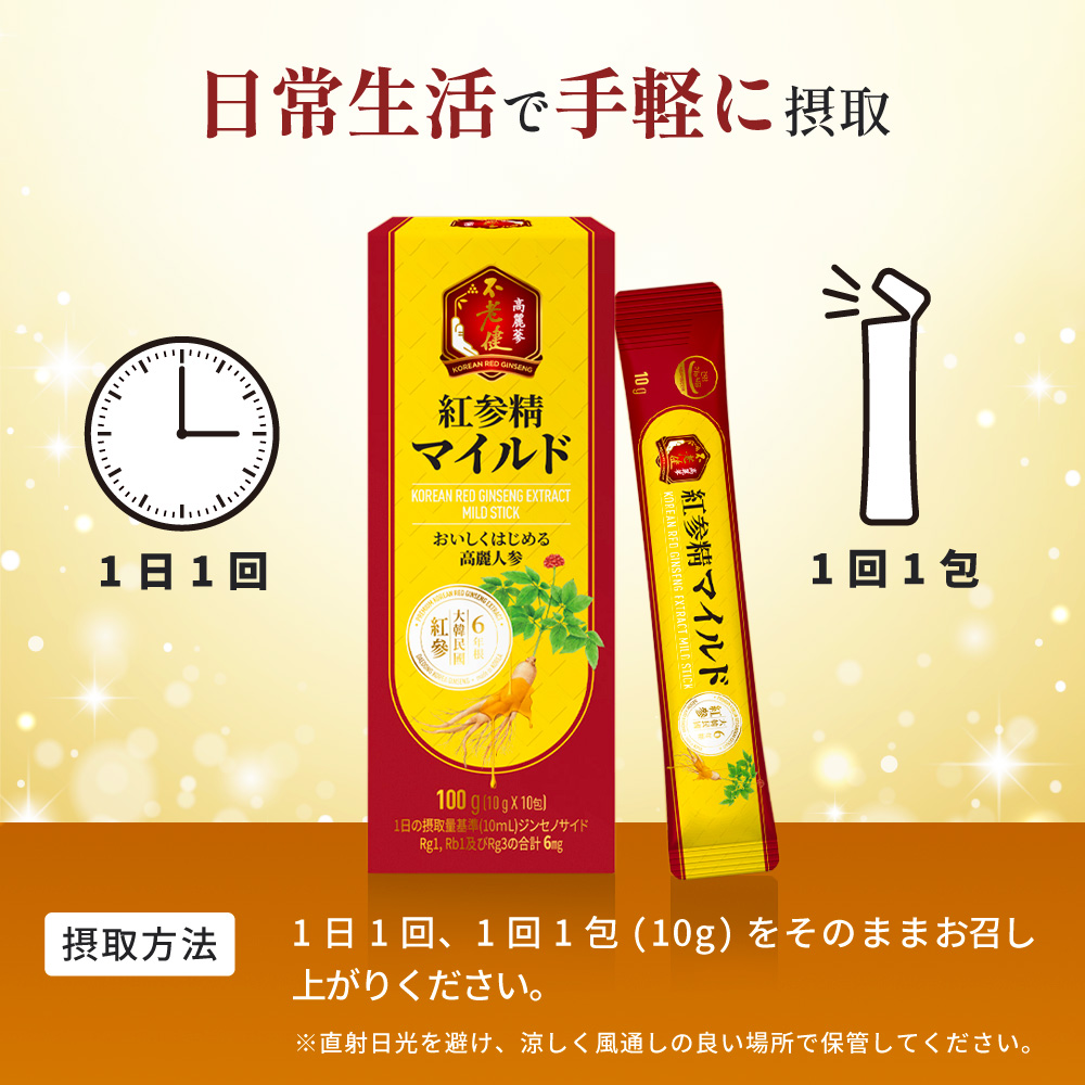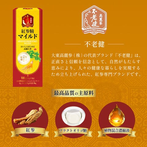 紅参精マイルド 10gx10包 高麗人参 紅参エキス 高麗人参エキス 紅参 ホンサム オリゴ糖 6年根紅参 6年根高麗人参 サポニン 健康食品 大東高麗 ダイトウコウライ 韓国 送料無料