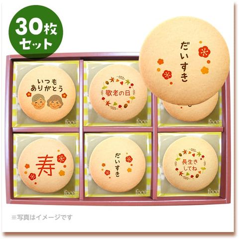 敬老の日 プリント クッキー メッセージ クッキー 30枚 セット 個包装 箱入り お礼 ギフト 贈り物 プチギフト お菓子 フォチェッタ focetta