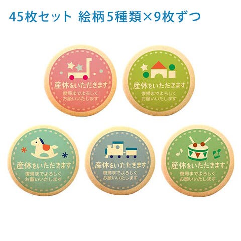 産休 あいさつ おもちゃ!お菓子 プリント クッキー メッセージ クッキー 45枚 セット 個包装 箱入り お礼 ギフト 贈り物 プチギフト お菓子 フォチェッタ focetta