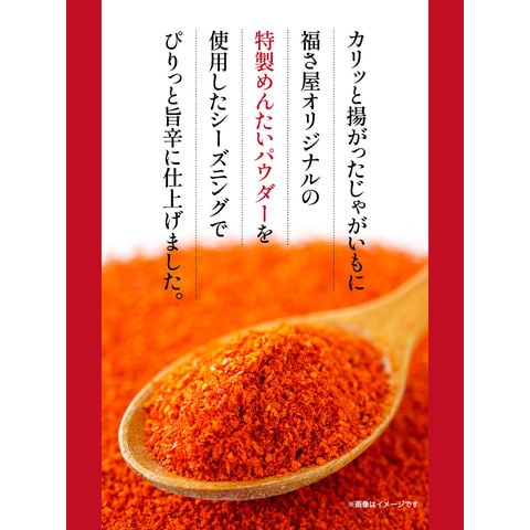 | 原材料名 | じゃがいも(国産)(遺伝子組換えでない)、植物油脂、カラシメンタイシーズニング/調味料(アミノ酸等)、着色料(パプリカ色素、紅麹)、香料、酸化防止剤(ビタミンE、ビタミンC)、発色剤(亜硝酸Na)、(一部に乳成分・さけ・大豆を含む) |