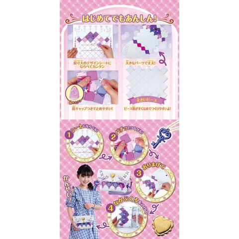 【おまけ パーツセット付】パチェリエ ロイヤルパープル 【PCR-039 ポーチ ショルダーバッグ 初心者セット 作成キット メイキングトイ 工作 手芸 手作り】 ★おまけ : 「パチェリエであそぼう!(お試しパチェリエ パーツセット)」 付属★ 糸を使わずにカラフルなピースをつなげて、ファッション小物が作れちゃう! パチェリエ史上一番つくりやすいセットができました! はじめての方でもつくりやすい、大きなピースと指キャップがついたパチェリエのエントリーセット。 ショルダーストラップは調整可能な金具つきで、機能性も丈夫さもUP! 【パチェリエおすすめポイント】 ジョイントをつなげるだけで本格的なバッグが簡単に作れちゃう!! ピースを組みかえると、デザインが変わる!オリジナルのバッグをつくっちゃお!! かわいいチャームやデコパーツがいっぱい♪ 【セット内容】 ピース33個、ジョイント51個、中袋1個、ボールチェーン1本、ショルダーストラップ1本、ソーイング針1本、リボン1本、チャーム1個、指キャップ1個、エンブレムシール1個、デザインシート1枚、取扱説明書1枚 ■対象年齢 :6才以上 【JANコード】 4977524488682 ■メーカー:ビバリー |
