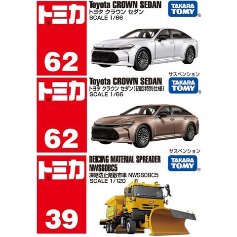 【送料無料!】 トミカ 3点セット (No.62 トヨタ クラウン セダン 初回版&通常版 + No.39 凍結防止剤散布車 NWS60BC5) 【初回限定カラー 初回限定版 ミニカー 本体 自動車】