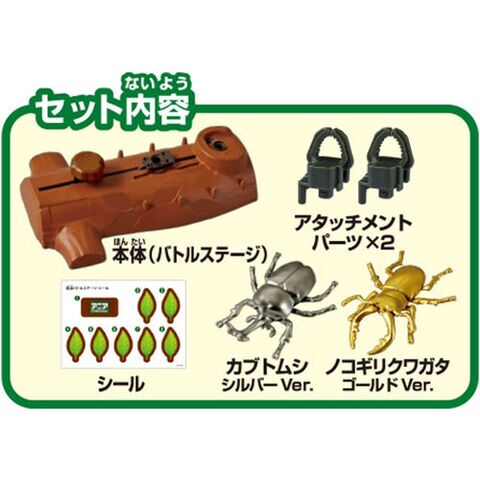 アニア 昆虫バトルステージ 【対戦セット フィギュア 人形 ミニチュア 玩具 おもちゃ 誕生日 プレゼント タカラトミー】 ★購入特典: アニア ギンビス たべっ子どうぶつ らいおんくん(非売品)×1個 付属★ 付属のアタッチメントパーツに昆虫アニア2体をとりつけます。 操作側と相手側にアタッチメントパーツをセットして準備完了です。 バトルレバーを操作して、相手の昆虫アニアをぶちかませ! みごと相手の昆虫アニアをふっとばすことができれば勝利! カブトムシ シルバーVer.とノコギリクワガタ ゴールドVer.のアニア2体付きなので、すぐに遊べます。 【セット内容】 本体(バトルステージ)(1)、アタッチメントパーツ(2)、ノコギリクワガタ ゴールドVer.(1)、カブトムシ シルバーVer.(1)、シール(1) ■メーカー推奨年齢 3歳以上 【JANコード】 4904810900566 ■メーカー:タカラトミー |