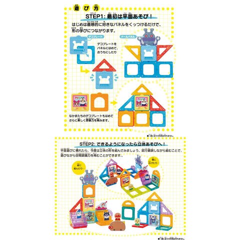アンパンマン マグパネル パチッと知育! たっぷり遊べるDXセット 【磁石 ブロック 人形 家 ハウス 知育玩具 出産祝い 誕生日 プレゼント ギフト おもちゃ】 ★おまけ「アンパンマン オリジナルエコバッグ (非売品)」×1 付属★ ※サイズ:縦 約35cm×横 約35cm、コットン製 磁石でパチッと簡単に組み立て遊びができる「アンパンマン マグパネルシリーズ」から、「アンパンマン マグパネル パチッと知育!たっぷり遊べるDXセット」が登場! 三角形や四角形、階段など色々な形のパネルで平面遊びから立体遊びまで楽しむことができ、空間認識力や想像力を育みます! アンパンマンやなかまたちのドールパネル7個に加え、ドールやアンパンマンごうやだだんだんなどDXセットでしか手に入らないパネルがたくさん! 自由にはめられるデコプレートとドールパネルでストーリー遊びもでき、ごっこ遊びがさらに広がります。 【セット内容】 マグパネル …18個 ドールパネル…7個 デコプレート …5個 ■対象年齢 1.5才以上用 【JANコード】 4582769802492 ■メーカー:バンダイ |