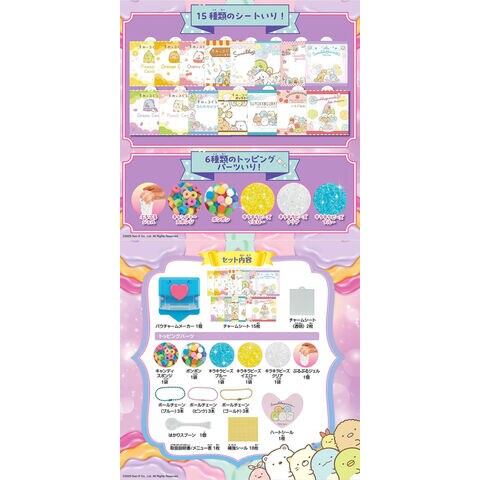 すみっコぐらしがプリントされた15種類のシートと6種類のトッピングパーツで
