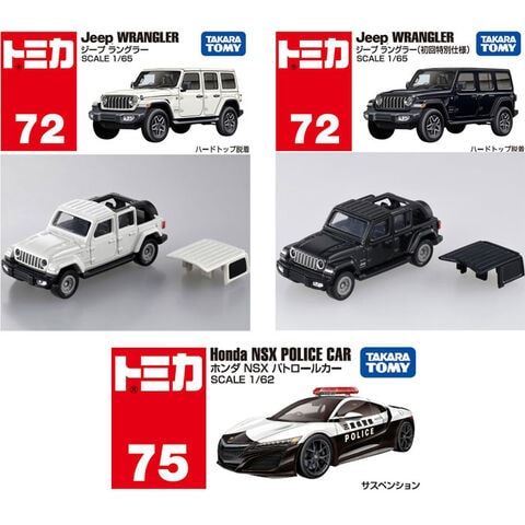 【送料無料!】トミカ 3点セット (No.72 ジープ ラングラー 初回版&通常版 + No.75 ホンダ NSX パトロールカー) 【HONDA 初回限定カラー 初回限定版 ミニカー 本体】