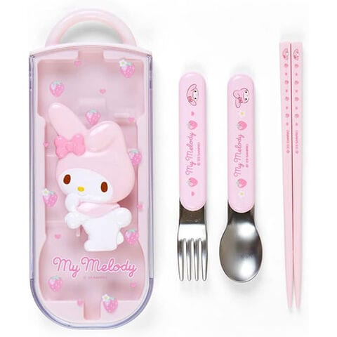 【送料無料!】サンリオ レリーフ付きランチトリオセット マイメロディ (箸 フォーク スプーン ケース お名前シール付属) 013846 【抗菌 おはし 給食 グッズ 雑貨】