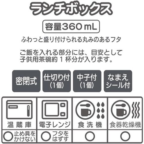 サンリオ ランチボックス クロミ お弁当箱 (360ml 中子付き 名前シール付き) 015458 【パープル オリジナル 公式グッズ 雑貨 ギフト プレゼント】 ★株式会社サンリオ 社製・サンリオ オリジナルの公式グッズ★ サンリオの正規卸ルートで仕入れを行っている国内正規品です! お弁当タイムが待ち遠しくなるランチグッズ☆フタはおかずを潰さずにふわっと盛れるドーム形★油汚れが落ちやすい樹脂タイプでお手入れ楽ちん♪ ■サイズ 約14.8×12.3×5.6cm、容量:360ml ■主な素材・原料 PP、AS樹脂 ●密閉式 ●中子・仕切り付き(各1個) ●名前シール付き ●抗菌 ●油汚れが落ちやすい加工 ●ご飯を入れる部分には、目安として子ども用茶碗約1杯分が入ります ●電子レンジ対応(フタをはずす) ●温蔵庫対応(止め具をかけない) ●食洗器、食器乾燥機使用可能 ●煮沸はお避けください ●耐熱温度:100度(フタ・止め具)、140度(本体・パッキン) ■原産国 日本 ■商品コード:[015458] ■メーカー:サンリオ(Sanrio Original) |
