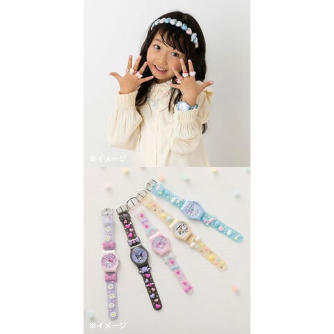 サンリオ ラバーウォッチ マイメロディ (腕時計・透明ケース付き) 180297 【ピンク 大人用 子供用 グッズ 雑貨 誕生日 クリスマス プレゼント ギフト 玩具】 ★株式会社サンリオ 社製・サンリオ オリジナルの公式グッズ★ サンリオの正規卸ルートで仕入れを行っている国内正規品です! お出かけが楽しくなるカラフルなラバーウォッチ☆ 文字盤からベルトまでかわいいが詰まっていて、乙女ゴコロをくすぐる★子供から大人まで使えるサイズ感♪ ■サイズ 本体:約幅3.3×奥行1×高さ4cm 手首回り:約12-16cm ケース:約幅5×奥行2×高さ24.5cm ■主な素材、原料 ケース:樹脂、ベルト:PVC ■詳細 ●使用電池:小型銀電池1個(電池番号:SR626SW) ●電池寿命:約2年 ●購入時モニター電池セット済み ●平均月差:±25秒 ※防水機能はありません。 ■セット内容・付属品 取扱説明書兼保証書付き、透明ケース入り ■商品コード:[180297] ■メーカー:サンリオ(Sanrio Original) |