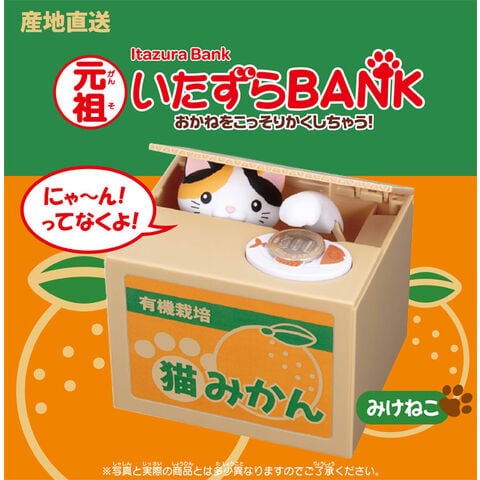 【送料無料!】元祖 いたずらBANK みけねこ (みかん箱 電動貯金箱) 【ネコ 猫 動く 音声 鳴く いたずらBANKシリーズ いたずらバンク フィギュア 玩具 シャイン】