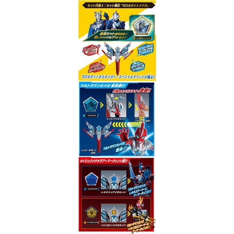 このセット1つで、ウルトラマンオメガ 3形態への変身遊びや、歴代ウルトラマンのメテオを使ったサウンド遊びが楽しめます。