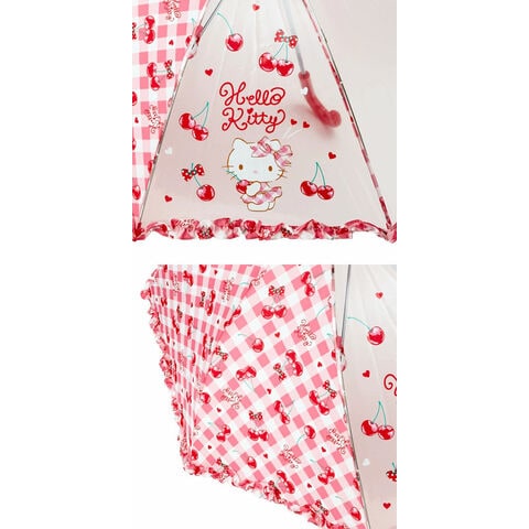 サンリオ キッズ長傘 ハローキティ (透明窓付き) 55cm 258954 【レッド チェリー さくらんぼ 子供用傘 雨傘 かさ カサ 子ども 小学生 グッズ プレゼント】