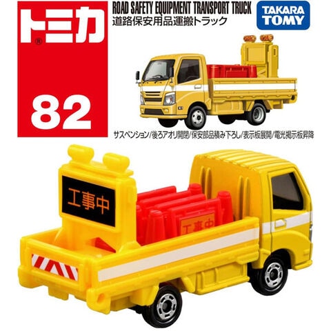 トミカ No.82 道路保安用品運搬トラック 【工事現場 保安部品積み下ろし 表示板展開 電光掲示板昇降 ミニカー 本体 サック箱 自動車 玩具】