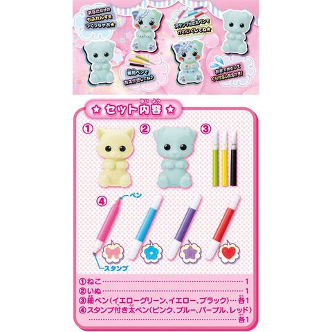 ドール2体(ねこ・いぬ)に、専用ペンはなんとスタンプペン4本含む計7本入り!