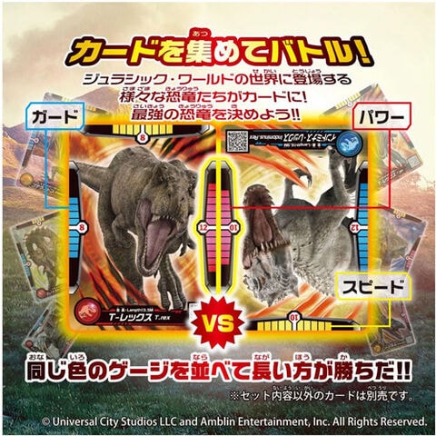 アニア「ジュラシック・ワールド」シリーズに、人気の恐竜フィギュア1体とバトルして遊べるカードがセットになって新登場!
