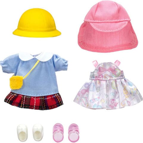 リカちゃん ドレス LW-20 ミキちゃんマキちゃんドレスセット ようちえんふく&リボンワンピ 【着せ替え人形用 洋服 幼稚園 制服 双子の妹 いもうと 玩具】 ミキちゃんマキちゃん用の赤いチェックスカートが付いたようちえんスモックと、ピンクの日よけ帽子に合わせるキャンディ柄のワンピースセット! ミキちゃんマキちゃんサイズの幼稚園の水色スモックと黄色い帽子、日よけ帽子とキャンディストライプのワンピース、それぞれに合わせるクツが2足付属したドレスセットです。 【セット内容】 スカート付きようちえんスモック(1)、キャンディワンピース(1)、ようちえんぼうし(1)、ひよけぼうし(1)、リボンシューズ(1)、リボンサンダル(1) ※人形は別売です。 ■対象年齢 3歳以上 ■メーカー:タカラトミー(TAKARATOMY) |