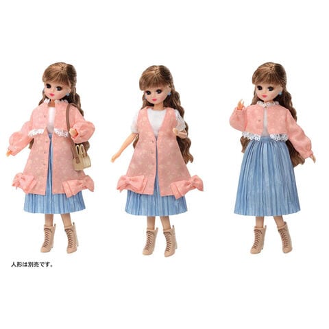 【送料無料!】リカちゃん ドレス LW-17 ベーシックフェミニン 【着せ替え人形用 洋服 ピンク レース プリーツスカート コート クツ 靴 バッグ イヤリング ヘアゴム 玩具】