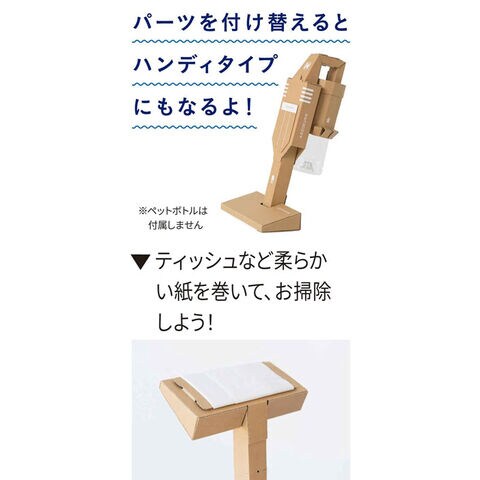 学研ステイフル kazokutte かぞくでつくる ダンボール工作キット 掃除機 【N15008 スイスイ掃除機 自由研究 夏休み 知育玩具】 【かぞくでつくってあそぶ、我が家だけのオリジナルおもちゃを作るキット】 kazokutteシリーズのダンボール工作キットです。 かぞくみんなで一緒に考えて一緒に作って遊べるキットです。 組み立ては大人と子どもで協力して行うことで、コミュニケーションが生まれます。 完成したらデコレーションしたり、色を塗ったりと「我が家だけ」のアレンジをすることが可能。 工作を楽しみ、完成したものを使って見立て遊びをすることで、想像力や発想力、コミュニケーション力などの発達を促します。 ダンボール工作キット(掃除機)はパーツを付け替えるとハンディタイプに早変わり。 ペットボトルに紙やカラフルな毛糸などを入れると本当に吸い取ったみたい! ティッシュなど柔らかい紙をヘッド部分に巻いて、さあお掃除しよう! お家のお掃除のお手伝い気分です。 【セット内容】 本体(組み立て式):1式、組み立て説明書:1枚 ■ご家庭で用意していただくもの ・両面テープ(10mm幅がおすすめです) ・ティッシュ又はキッチンペーパー ・ペットボトル(280ml-500mlサイズがおすすめです) ■メーカー:学研ステイフル |