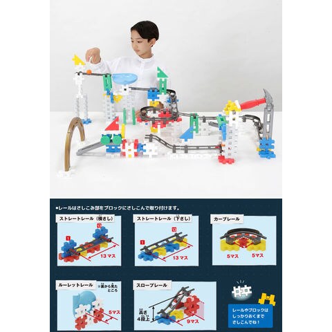 Gakkenニューブロック ローリングキュー スタンダードセット (ボールコースター作成キット) 【知育玩具 おもちゃ 誕生日プレゼント クリスマス ギフト】 ダイナミックなボールコースを作り上げよう! 「Gakkenニューブロック ローリングキュー スタンダードセット」は、ブロックにボールを転がして遊べます。 専用のレールをブロックに取り付けることでニューブロックの大きさを生かしたダイナミックなコースを作成できます。 いろいろなブロックを組み合わせればコース上にいろんなギミックを作成することも可能です。 簡単なコースから徐々に難しいコースを作れるようになるステップアップガイドが付いています。 遊び方無限のニューブロックは、お子さまの「創造性」を刺激し、豊かな「経験」をつくります。 ニューブロックの特長 ・やわらかくて大きいから安心・・・やわらかいから踏んでも投げても痛くない、大きいから誤飲の心配のない安心設計。 ・創造力を育む特徴的な形・・・「つなぐ」「はさむ」「さしこむ」など様々な組み方ができ、創造力や認知力を育みます。 ・成長に合わせて長く遊べる・・・見立て遊びやごっこ遊び、大きな作品づくりまで1.5歳から小学生になっても遊べます。 【セット内容】 ブロック15種131個、専用レール5種15個、トンカチ1個、ボール3個 ■対象年齢:4歳以上 ■メーカー:学研ステイフル |