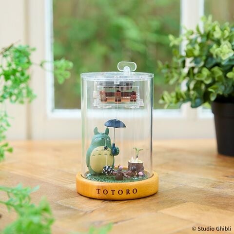 ねじをまわすとトトロの傘、まっくろくろすけと 切り株の中の中トトロがひょこひょこと動きます! 傘をさすトトロがかわいい。