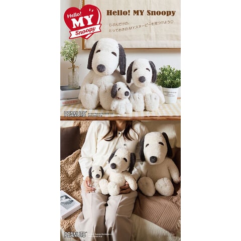スヌーピー ぬいぐるみ ハロー!MY スヌーピー 手のひらサイズ 【ハローマイスヌーピー 人形 本体 ヌイグルミ ピーナッツ SNOOPY PEANUTS セキグチ】 手にした瞬間、ときめいた。 思わずぎゅっと抱きしめる。 「ハロー! MY スヌーピー」 カール加工が施された、思わずなでたくなるかわいい生地で癒しを感じさせる風合いが魅力的。 あたたかみのあるアイボリーカラーと、心を落ち着かせるチャコールブラウンの組み合わせは、心を和らげてくれるカラーリングです。 ちょこんとお座りしやすいボディで、インテリアにも自然に馴染むぬいぐるみです。 左胸に付いている、出会いの“ときめき”をイメージしたハートの紙タグも注目のポイント。 あなたにとっての特別な「MYスヌーピー」をぜひ見つけてみてください。 ※左胸のタグはハサミで簡単にカットできる仕様です。 ●ちょこんと座る、「手のひらサイズ」 すっぽりと手のひらに収まるコンパクトなサイズ。デスクに飾るのはもちろん、いっしょにお出かけするのにもぴったりです◎ ■サイズ(約):H20×W13×D9cm(座高15cm) ■メーカー:セキグチ(Sekiguchi) |