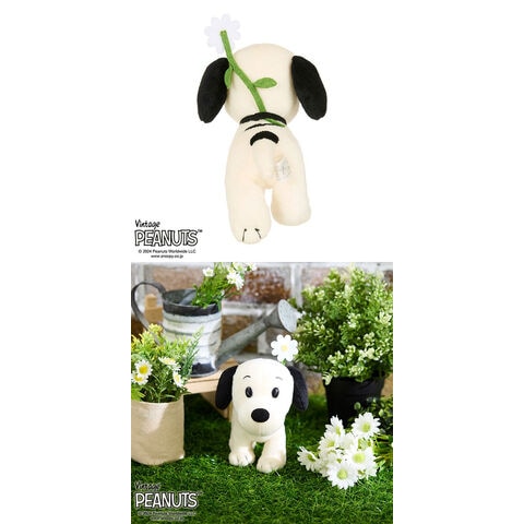 1950年のコミック『ピーナッツ』に初めて登場した、お花を首輪に挿して歩いている初登場シーンを再現♪ 可愛らしさとノスタルジーが詰まったぬいぐるみになっています。