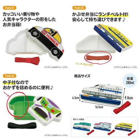 プラレール N700系新幹線 ダイカットランチボックス [中子付き・ベルト付き] お弁当箱 LBD2 【電子レンジ対応 電車型 キャラクター弁当箱 遠足 運動会】 キッチン用品で国内大手のスケーター株式会社の商品です! プラレール 新幹線をモチーフに、車両の形をしたダイカットランチボックスです かぶせ弁当にランチベルト付なので安心して持ち運びできます。 ●本体半分に入るご飯の量、お茶碗(約200ml) 約0.7杯分 ●小分け便利な中子付き ●フタを外して電子レンジ加熱OK ●ランチベルト付き ●名前シール付き 【サイズ】 ■商品サイズ:約幅138×縦119×厚み56mm ■容量:280ml 【品質表示】 ■フタ・本体・中子:ポリプロピレン (耐熱温度:120度) ■ベルト:天然ゴム 【仕様】 ■名前シール・ランチベルト付属 ■品番:LBD2 ■メーカー:スケーター(Skater) |
