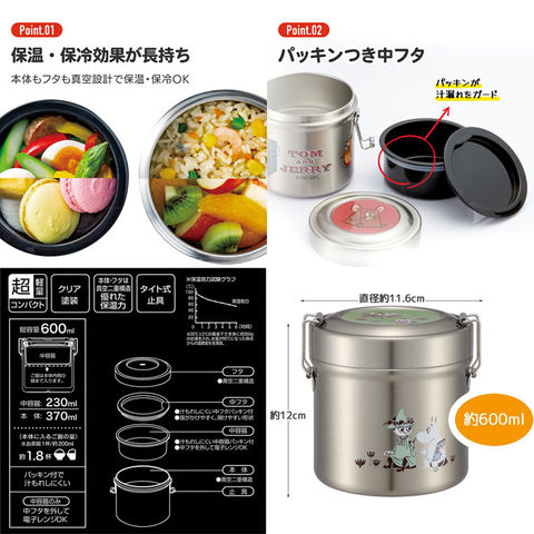すみっコぐらし (うさぎのおにわ) お弁当箱 抗菌 真空ステンレスランチボックス 600ml STLB1AG 【麺 保温弁当箱 保温ジャー 真空断熱ランチジャー 丼ぶり】 キッチン用品で国内大手のスケーター株式会社の商品です! 【保温・保冷効果の高い真空2層構造】 さむーい冬でもあたたかい状態をお昼までキープ。 ご家族に美味しい食事を食べさせてあげられます。 男性、女性どちらもお使いいただける おしゃれでシンプルなブルックリンのカフェスタイルのデザインです。 【あと乗せで出来立てのようなおいしさ】 後から具をのせる丼スタイルにすれば、 ご飯もベタつかず、出来立てのおいしさが楽しめます! 温かくて美味しいご飯はそれだけで幸せな気持ちになれます。 午後の仕事や勉強もがんばろうと思えるかもしれません。 【中容器は電子レンジOK】 中容器がセットになった2段タイプのランチジャーです。 オフィスなどにレンジがあれば、 中容器は電子レンジで再加熱できるのでアツアツが食べられます。 さらに抗菌仕様なので衛生面も安心です。 ※プラスチック製の中容器のみ電子レンジOK。 本体は絶対に電子レンジで使用しないでください。 ※自動食器洗浄機・食器乾燥機は使用不可です。 ※錆の原因となりますので、食材を入れる際、アルミカップやアルミホイルは使用しないでください。 保温効力:56度以上(6時間) 保冷効力:10度以下(6時間) 【商品サイズ(約)】 本体:直径116×高さ120mm 総容量 600ml(中容器:230ml・本体370ml) 重さ:410g 【品質表示】 中容器・中蓋:ポリプロピレン(耐熱温度-20~140度) パッキン:シリコーン(耐熱温度-20~140度) 底板:エラストマー(耐熱温度-20~70度) 本体・フタ:ステンレス鋼(アクリル樹脂塗装) 止具:ステンレス 使用抗菌剤の種類:無機抗菌剤 加工方法:練込 加工部位:全体(金属部位除く) SIAAマークはISO22196法により評価された結果に基づき、抗菌製品技術協議会ガイドラインで品質管理・情報公開された製品に表示されてます。 ※すべての細菌の増殖を抑制するものではありません。 ※自動食器洗浄機、また食器乾燥機は使用しないでください。 ※中容器のみ電子レンジで使用できます。(本体は電子レンジ使用できません。)電子レンジで加熱する際は中フタを外してください。 ■メーカー:スケーター / Skater |
