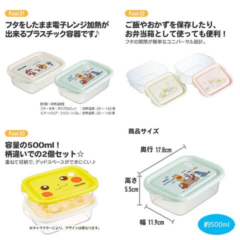 Minecraft マインクラフト (クリーパー エンダーマン) 抗菌 保存容器 弁当箱 フードコンテナ シールボックス 2個セット 500ml FCN2WAG 【マイクラ 給食 遠足 グッズ 雑貨】 キッチン用品で国内大手のスケーター株式会社の商品です! フタをしたまま電子レンジ加熱が出来るプラスチック容器です♪ ご飯やおかずを保存したり、お弁当箱として使っても便利! ※完全密封ではありませんので汁気のあるものを入れると漏れる可能性がありますのでご注意ください。 容量500ml、お得感のある柄違い2個セット! フタの溝に容器の底面がはまるので2つ重ねて置くこともできます。 【商品サイズ(約)】 サイズ:178mm×119mm×55mm 重量:50g(1個当たり) 【品質表示】 フタ・本体:ポリプロピレン(耐熱温度-20~140度) エアーバルブ:シリコーンゴム(耐熱温度-20~140度) 使用抗菌剤の種類:無機抗菌剤 加工方法:練込 加工部位:全体 SIAAマークはISO22196法により評価された結果に基づき、抗菌製品技術協議会ガイドラインで品質管理・情報公開された製品に表示されてます。 ※すべての細菌の増殖を抑制するものではありません。 ※自動食器洗浄機・食器乾燥機での使用はしないでください。 ※直火・オーブン及びグリルでの使用をしないでください。 ●日本製 ■メーカー:スケーター / Skater |